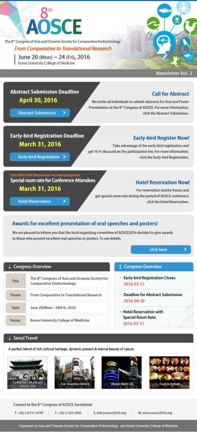 日本比較内分泌学会 会員のみなさま すでにみなさまのところにも、第8回アジアオセアニア比較内分泌学会議の案内が届いていることと思います。早期登録の締切が3月末ですので、お知らせいたします。 庶務幹事 兵藤 晋