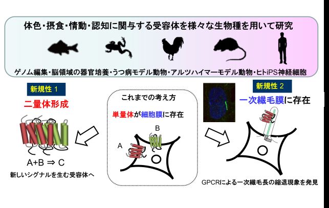 名前:斎藤祐見子(さいとう ゆみこ) 所属:広島大学 総合科学部 研究手法:Gタンパク質共役型受容体(GPCR)を介した各種シグナル解析(生化学、薬理学) 細胞小器官一次繊毛のマニュピレーションとその細胞生物学的解析 対象動物:マウス、ラット、ヒト (iPS) URL:https://researchmap.jp/read0213041 ラボや研究紹介: 環境センサー一次繊毛(右矢印)という「場」に集積するGタンパク質共役型受容体の研究をしています。受容体を介した繊毛動態が細胞機能に及ぼす影響について丹念に調べることで (拙速に流されることのない)、 国際的に長くciteされる研究を目指します。 |